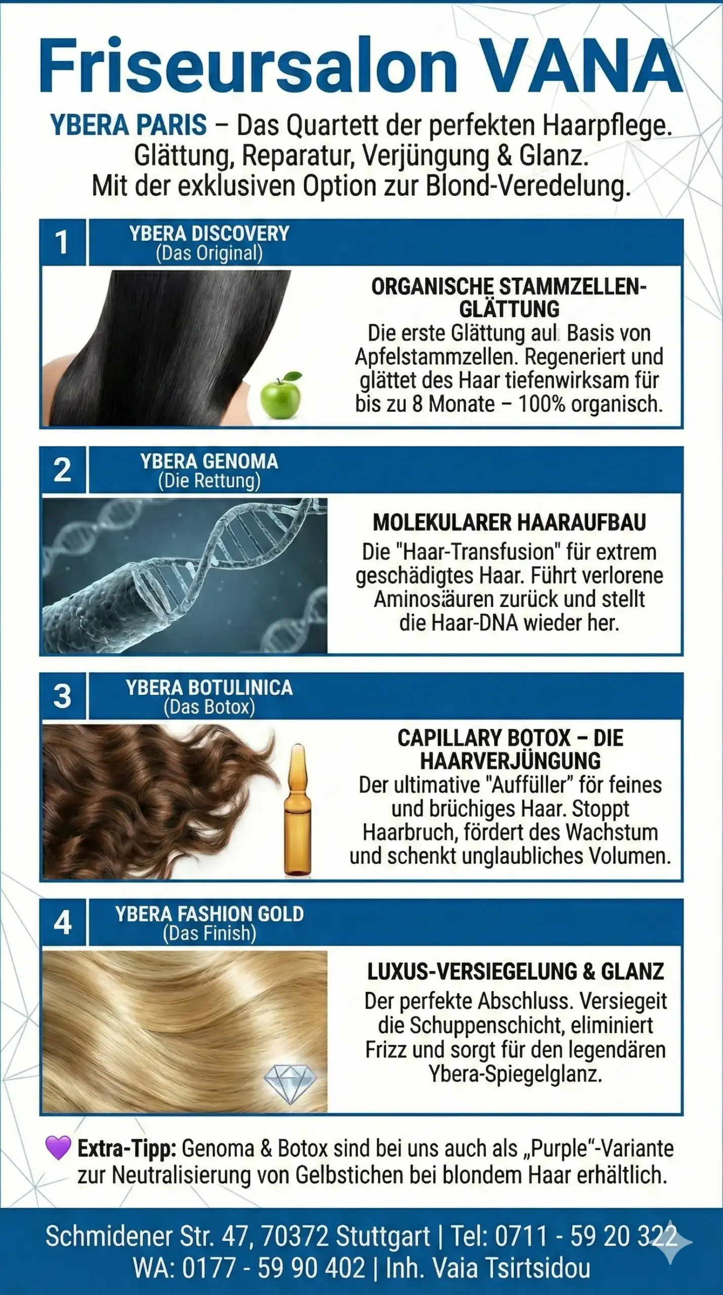 Die exklusiven Ybera-Treatments sorgen sofort für sichtbare Perfektion und tiefe Regeneration. Sie wünschen sich langanhaltende Glättung, molekularen Aufbau oder ultimativen Luxus-Glanz?